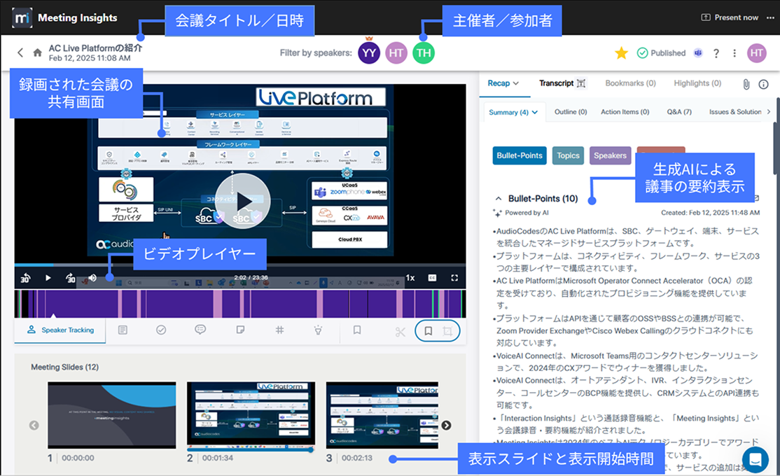 Microsoft Teams会議/Zoom会議を余すことなくキャプチャし、AIにより分析した結果を組織内で共有。